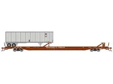 Operationally, these cars are appropriate for any layout set from the 1960s to the present day. In TOFC service, F89Fs could be found mixed into manifest trains, or as part of dedicated TOFC trains. It also wasn’t uncommon to find them mixed into stack trains, alongside such cars as Gunderson Maxi-Is or Maxi-IIIs, which are also available from Athearn. The new F89F also goes great with Athearn’s extensive line of 40’, 45’, and 53’ trailers, not to mention our various 20’, 40’, 45’, 48’, and 53’ containers mounted on chassis, all of which are available in many different paint schemes to appeal to modelers of all eras.