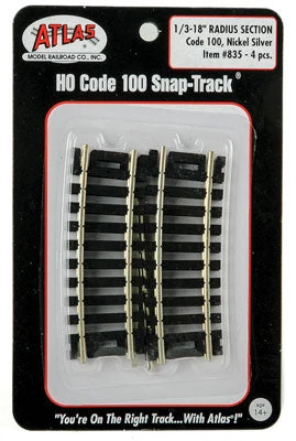 .Atlas 835 HO Scale Code 100 Track 18″ Radius 1/3 Curve