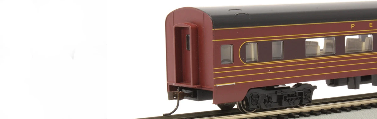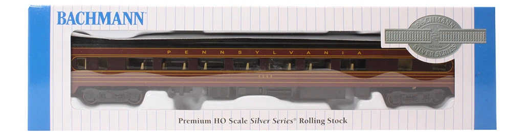 85′ Smooth-Side Coach Car with Lighted Interior – PRR #4263 – FLEET OF MODERNISM – HO Scale. In the 1930’s lighter weight materials allowed for the development and production of a variety of coach, baggage, and observation cars as railroads ushered in the beginning of the streamline era. Materials like stainless steel, and aluminum, allowed for passenger cars to have smooth or fluted sides and smooth roof lines. Bachmann faithfully reproduces these passenger cars that are fully assembled with features that include; lighted interiors, Highly Detailed Painted Bodies with Precision Graphics (where applicable), Blackened Machined Metal Wheels with RP 25 Contours, Magnetically Operated E-Z Mate® Couplers, Non-magnetic Blackened Brass Axles with Needle-point Bearings, Celcon Trucks, and Added Weight for Optimum Tracking Performance.