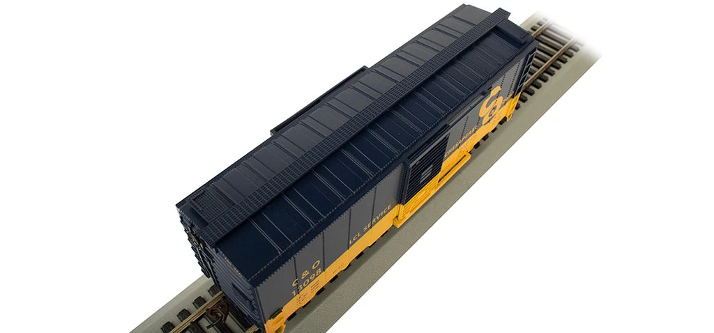 40′ Box Car – CHESAPEAKE & OHIO® #13098 – HO Scale. Box Cars are the workhorse on any railroad, as they are used to economically move merchandise across the country. This 40 foot Box Car comes in a variety of road names, with prototypical paint schemes. Bachmann Silver Series® rolling stock features: Highly Detailed Painted Body with Precision Graphics, Sliding Doors, Blackened machined-metal wheels with RP25 contours, Magnetically operated body mounted E-Mate® couplers, Blackened-brass axles with needlepoint bearings, Celcon trucks, and has added weight for optimum tracking.