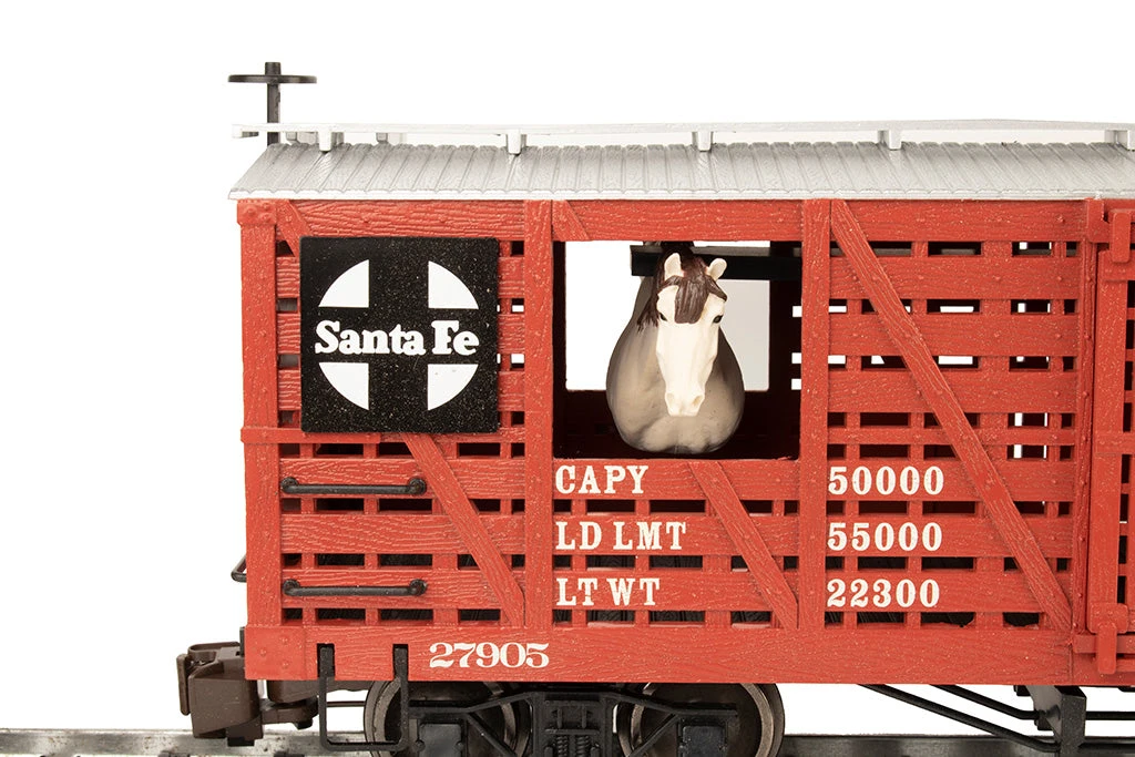 Bachmann 98707 G Gauge 40′ Animated Stock Car with Horses Santa Fe ATSF