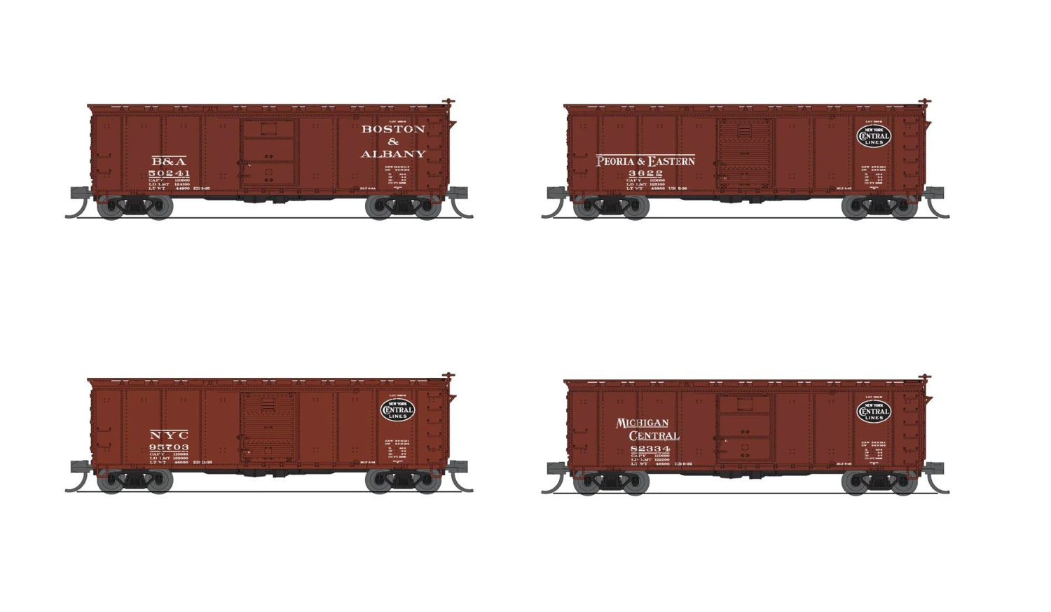 In addition to the NYC models, we are also offering eleven 2-packs of models from railroads that ran the ubiquitous USRA 40′ steel box cars. The cars are almost identical to the NYC prototype in real life.