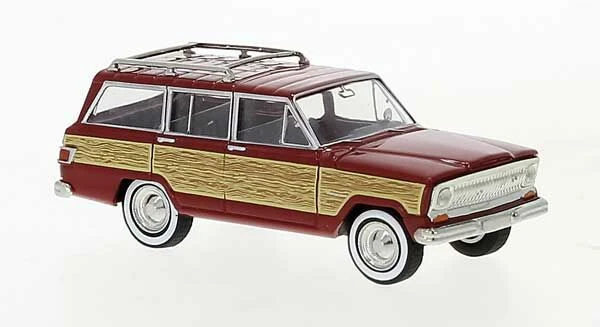 Brekina 19872 HO Scale 1967 Jeep Wagoneer Woodgrain and Red