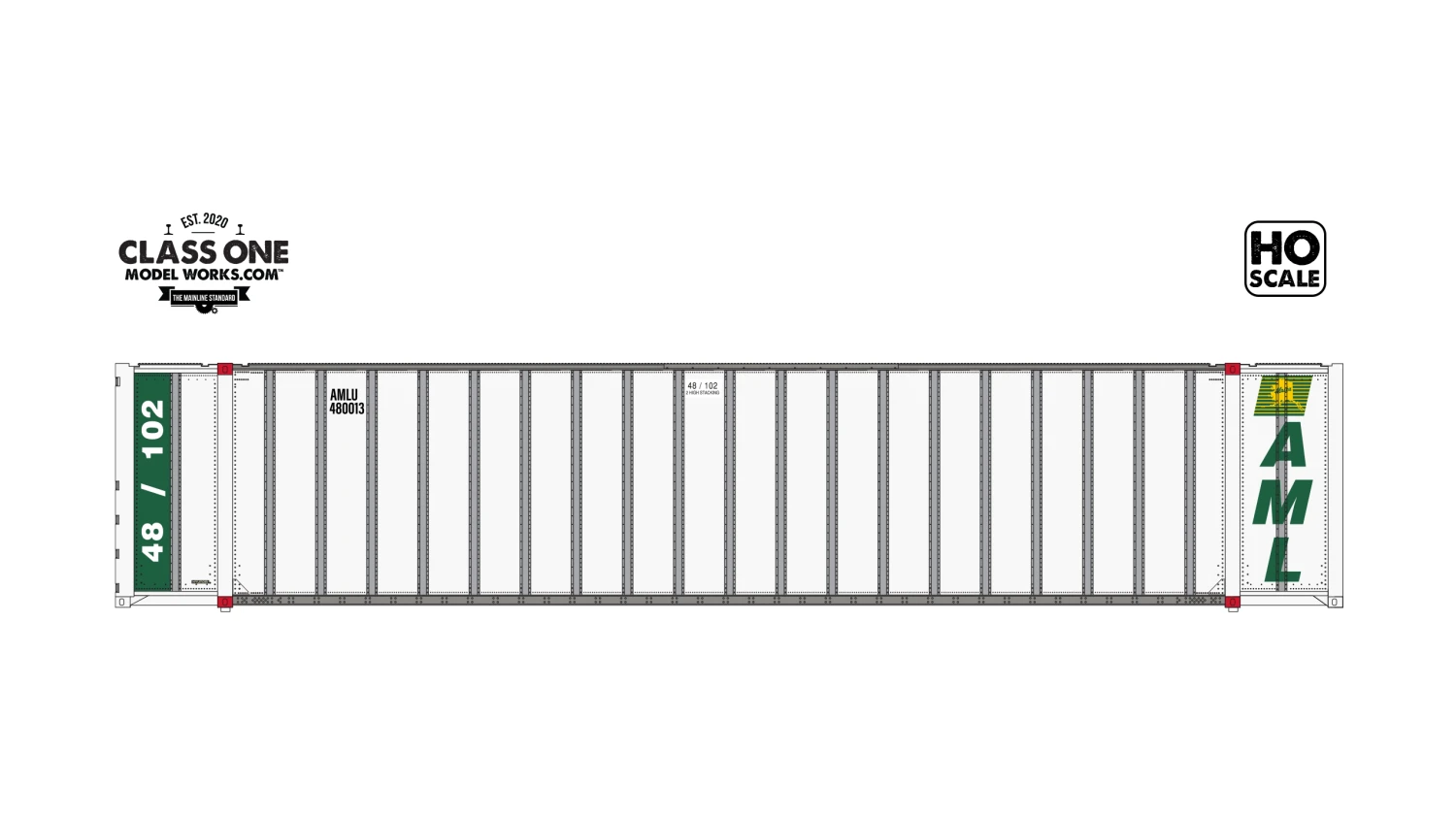 Class One Model Works provides accurate paint and lettering taken from photographs of the prototype, and numbering that matches the class numbers for each operator or railroad. The containers come with the exterior posts already painted to match the aluminum color of the prototype containers and galvanized coloring for the upper and lower structural channels.