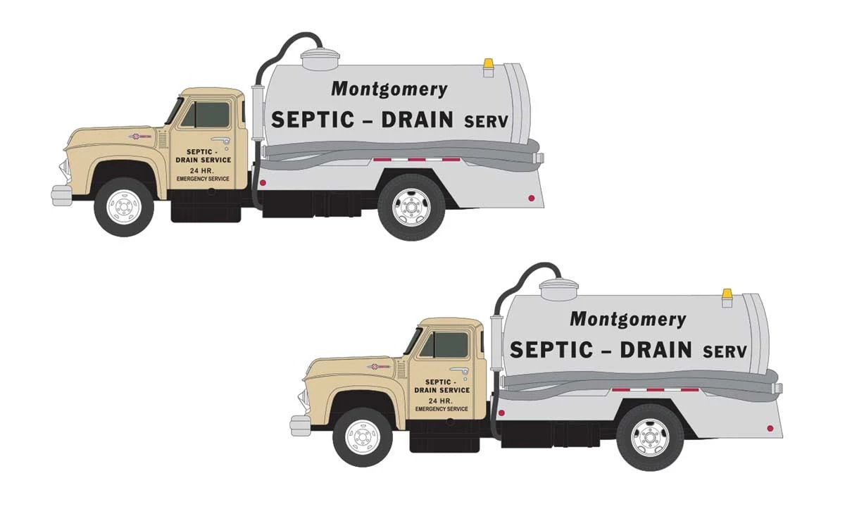 This Classic Metal Works Mini Metals N Scale 1954 Ford Septic Tank Truck features a die cast metal body, interior seats, window glazing and authentic decoration. It’s perfect for adding realism to your late-steam, transition and early diesel-era scenes. This Ford septic tank truck features a realistic “honey wagon” style body with appropriate detailing and will look great in your layout scenes. The 1954 Ford Septic Tank Truck is one of many detailed Classic Metal Works N Scale vehicles and accessories.