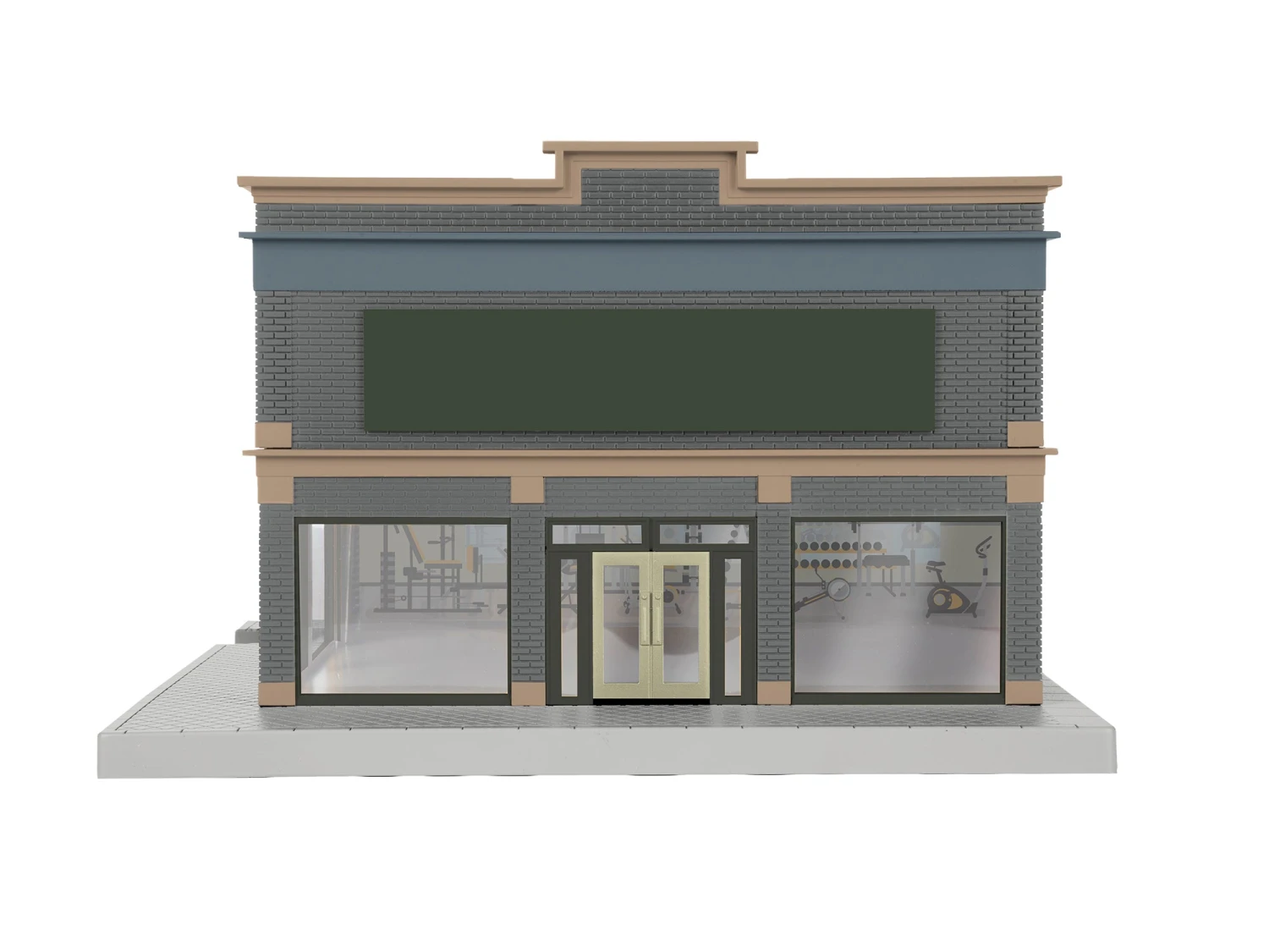 What town is complete without the local gym? Add some realism to your layout with this Plug-Expand-Play lighted Tough Guy Gym & Fitness building.