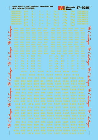 Microscale Decals 87-1080 HO Scale The Challenger Passenger Cars Union Pacific