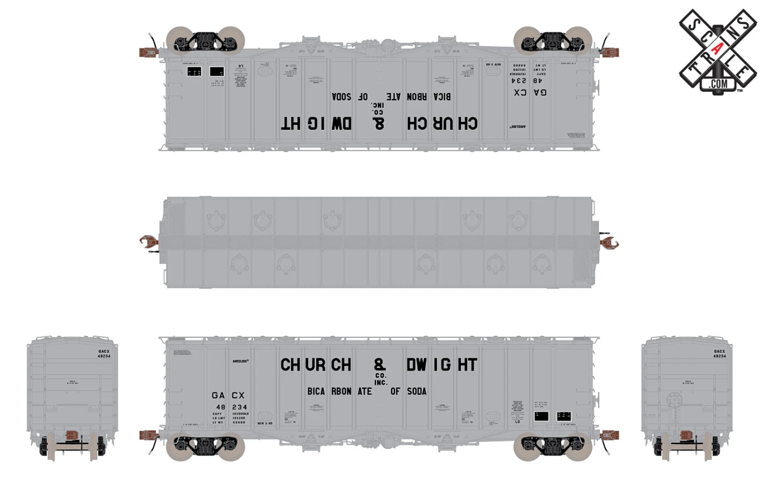 ScaleTrains HO Scale 32997 Rivet 4180 Airslide Hopper Church & Dwight GACX 48246