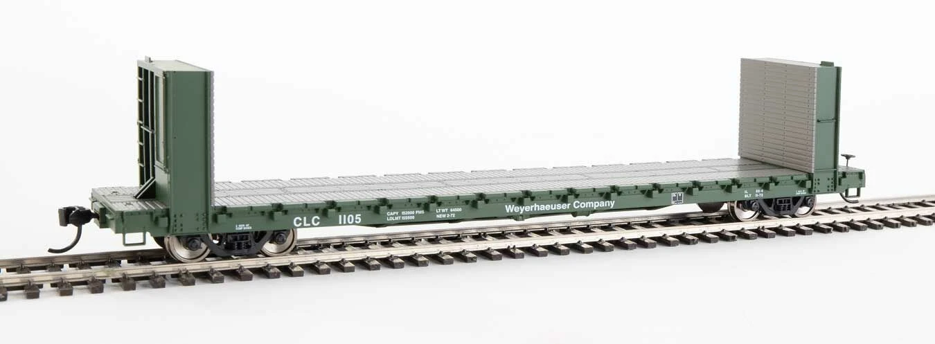 Walthers Mainline 910-5827 60′ Pullman Bulkhead Flatcar Weyerhauser CLC 1105